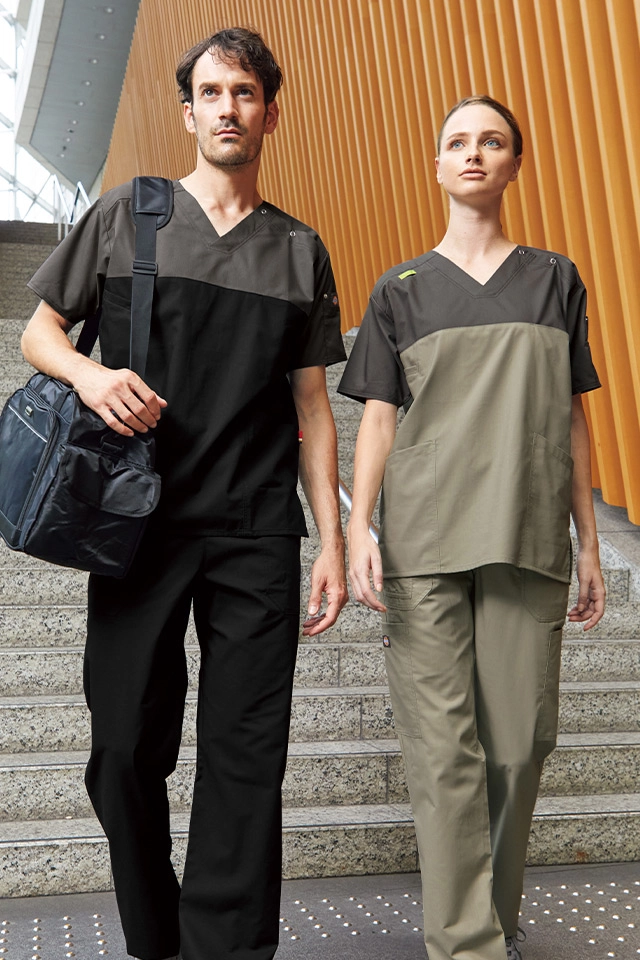 デイリーユースのウェアでも世界的なシェアを誇るDickiesブランド。ストリートカルチャーとも深いかかわりのあるブランドだからこそ作れるカジュアルでラフなデザインはスクラブにも生きています。色使いや形は斬新でありながら奇抜ではなく、レディース・メンズ問わず選びやすいデザイン。他のスクラブにはあまりない「カッコいい」ユニフォーム。細部にまでこだわりを感じるデザイン性の高さがナースや医師から指示されている理由といえるでしょう。