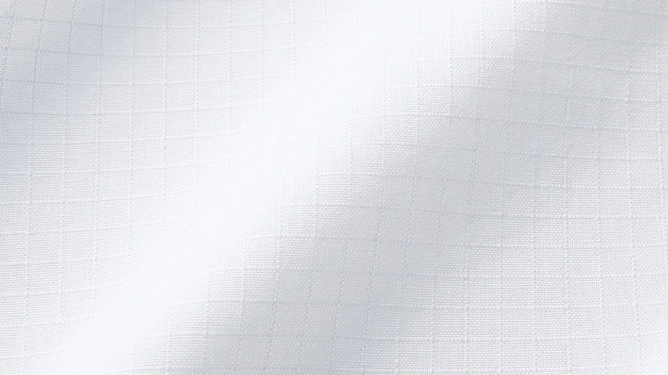 ポリエステルを芯にし、綿を皮膜に持つパルパー糸を用いた高密度の平織素材。肌に接する綿が心地よく、芯のポリエステルが堅牢性を補う。双方の長所を最大限に体感できる素材です。
