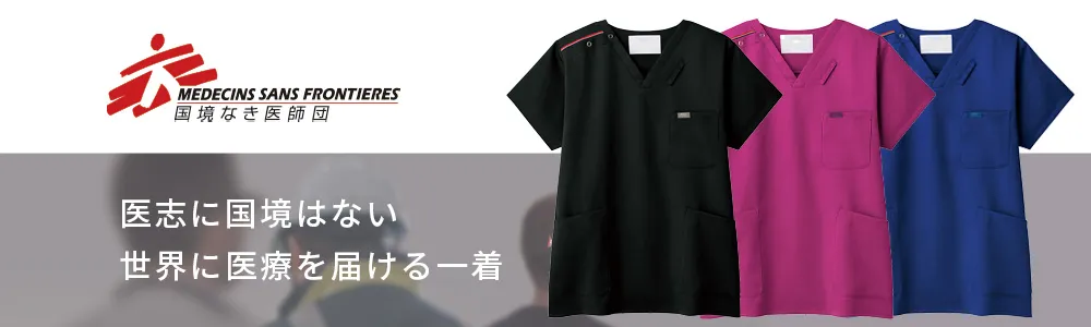 フォークがお届けする「国境なき医師団」のスクラブは、この活動に賛同いただいている多くの医療従事者に愛用されているスクラブです。