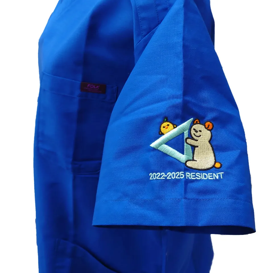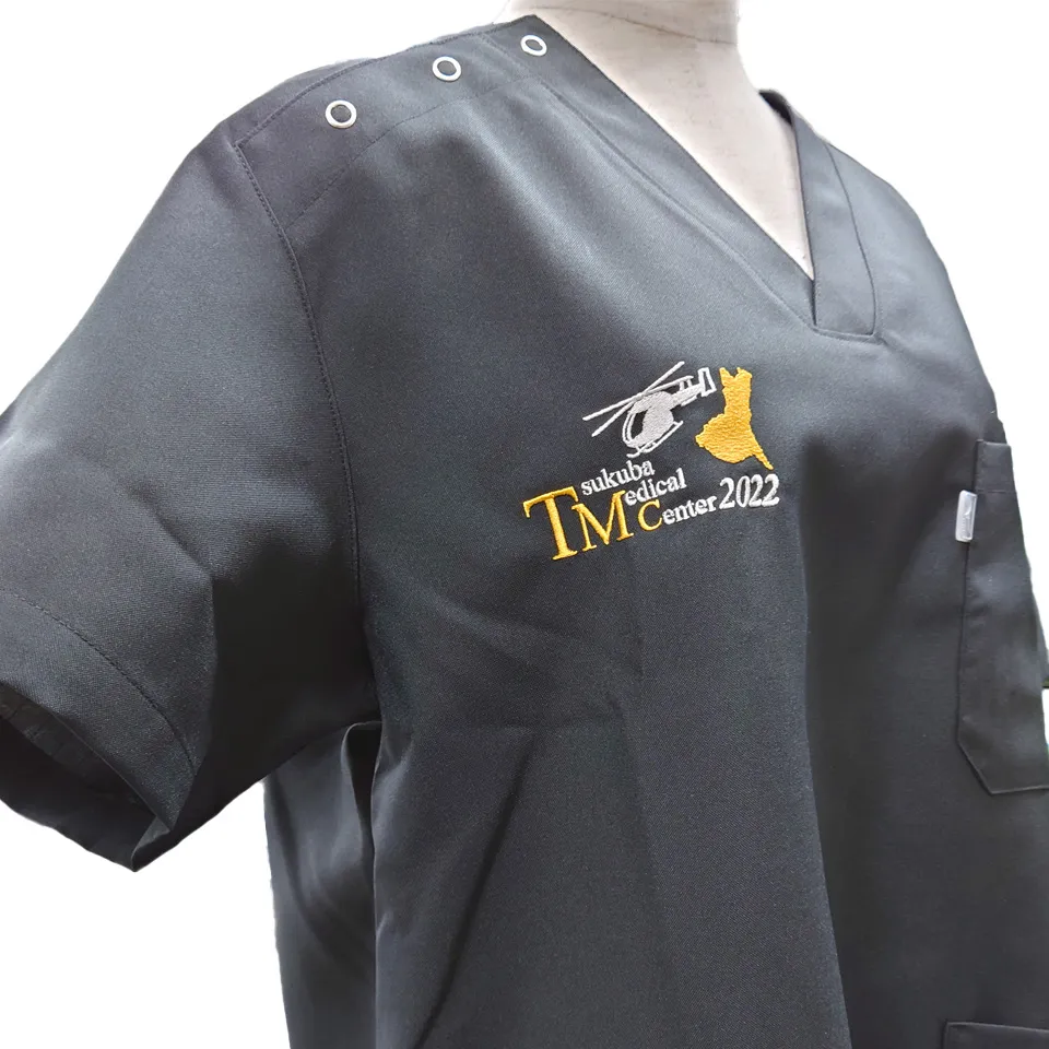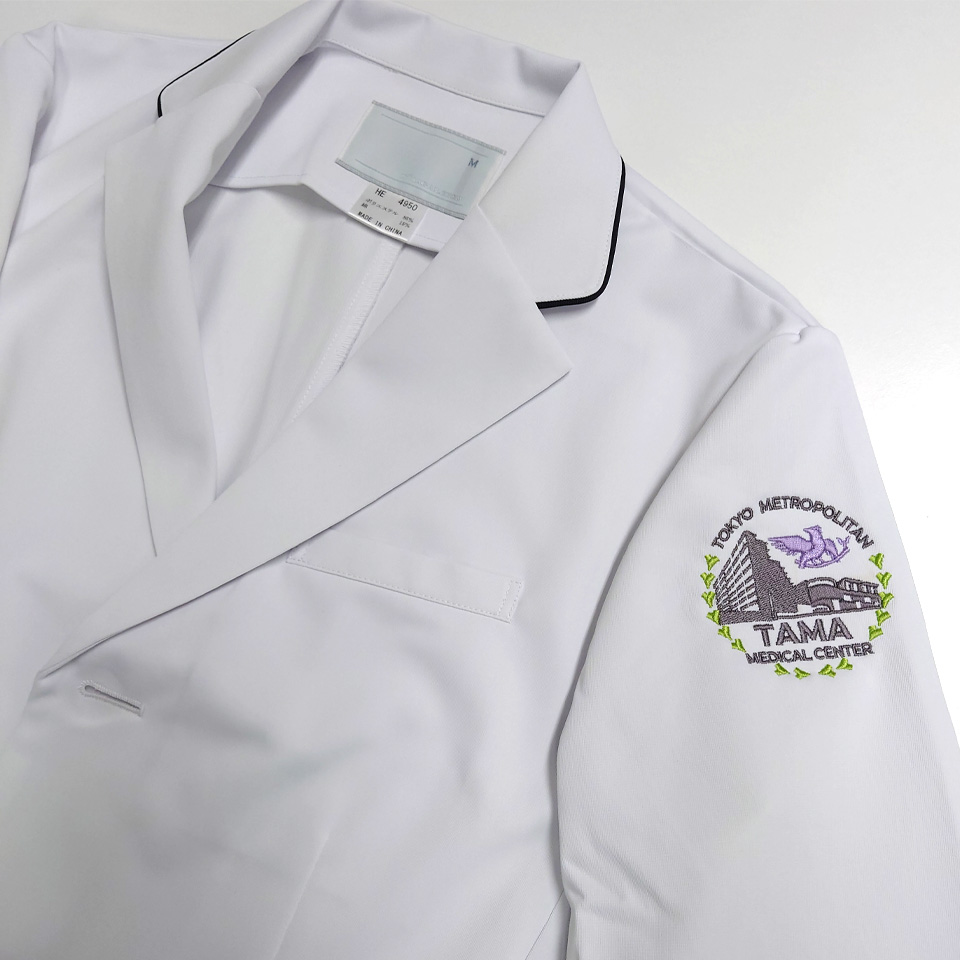 かっこいいスクラブ・ドクターコートには刺繍がより映えます。