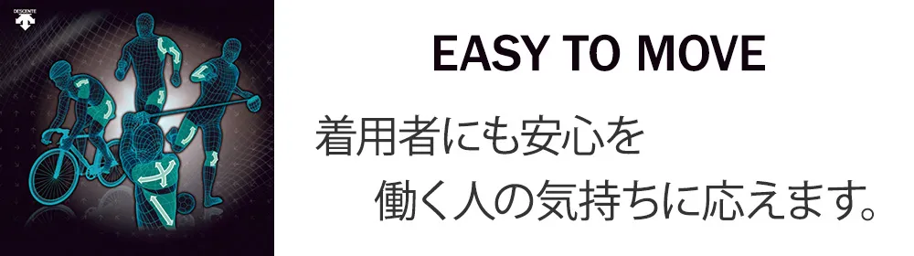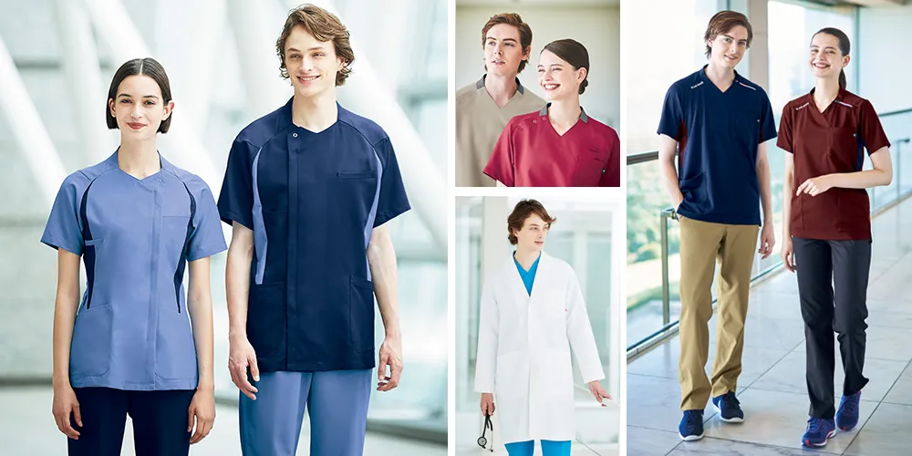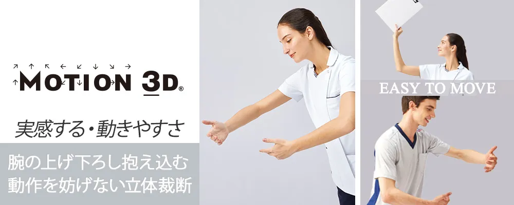 伸びやかでしなやか・動く姿まで美しく見せる服。人間工学に基づき研究を重ねてきたテクノロジーは大きな動作の多い医療・介護の現場で要求される「着心地」「機能」「耐久性」「品質」へと応用され、高基準の作業性を実現。