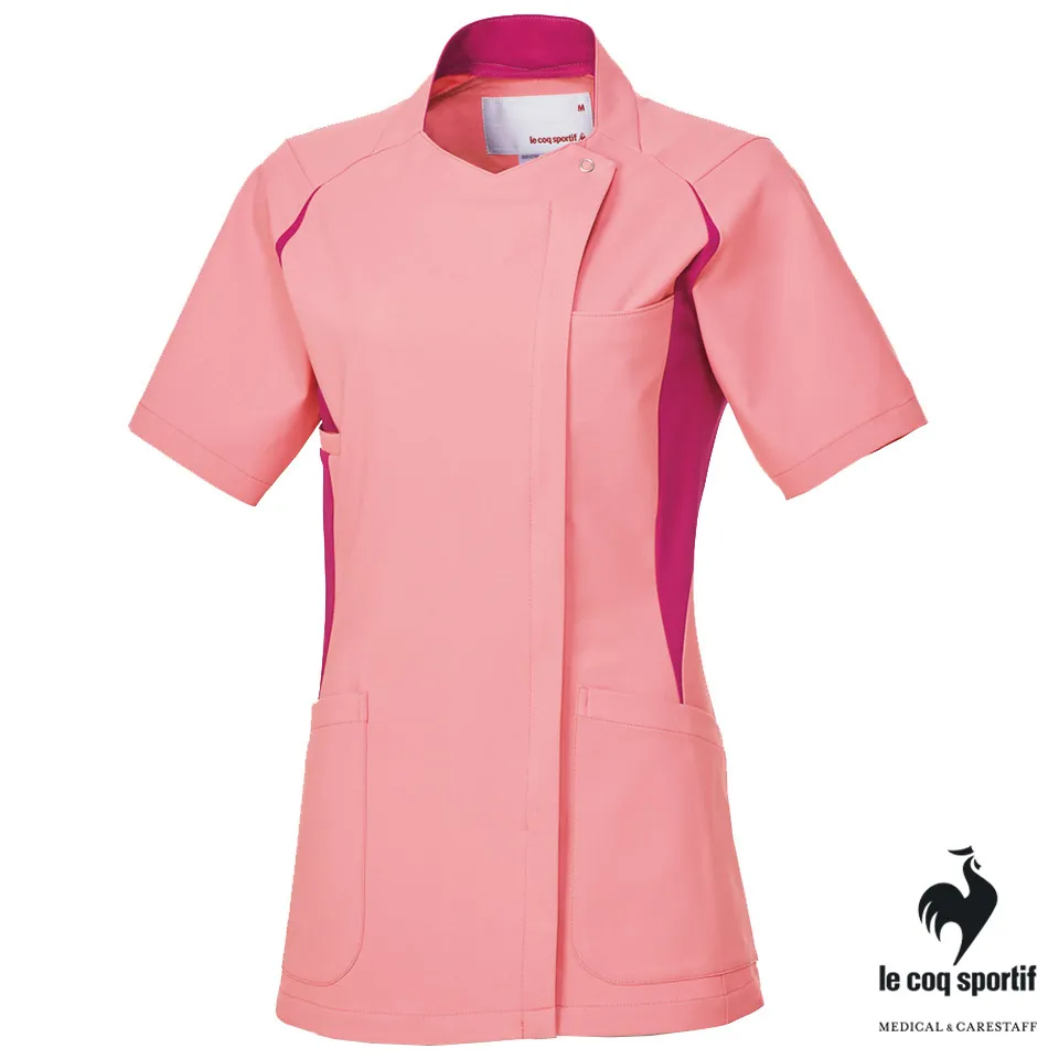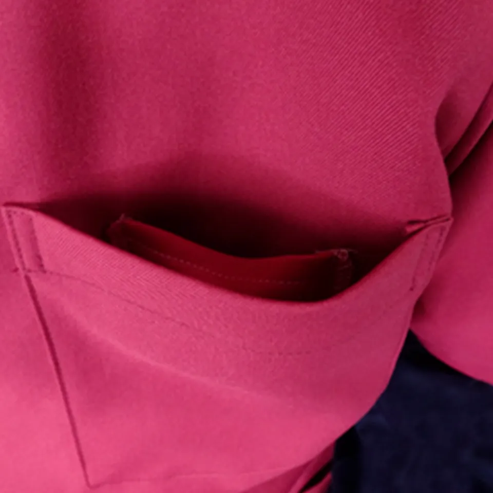 移動などで抱きかかえることの多い看護・介護の現場。抱え込む動作の肩から袖のつっぱり感を軽減する立体裁断を施しています。