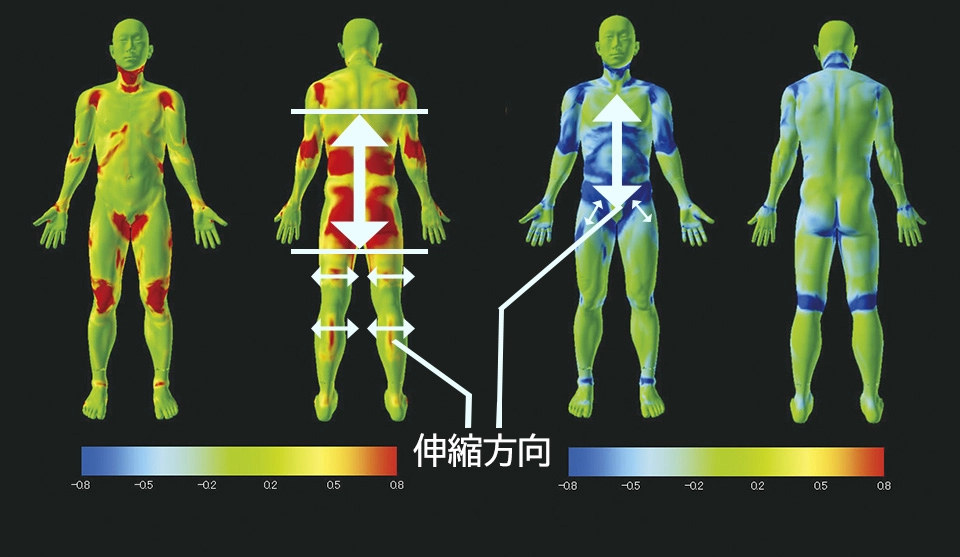 コンピューターグラフィックス解析や解剖学に基づいて身体の動きを徹底的に研究した「Dynamotion Fit」は、医療現場などでの最適な「動きやすさ」を追求したウェア設計がされています。動的機能裁断や機能素材選定により、ウェアの引きつれ・圧迫感を軽減し、運動中のフィット感を高めることでパフォーマンスを向上させます。