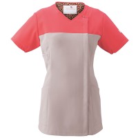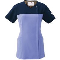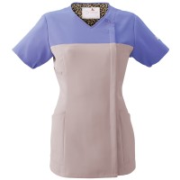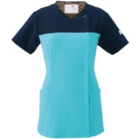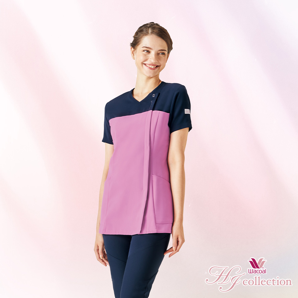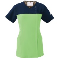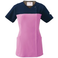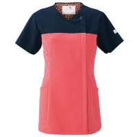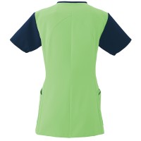 胸元に濃いカラーをあしらい、気になる汚れを目立たなくしているので、心地よく働けます。