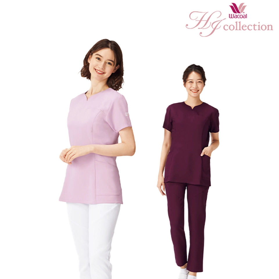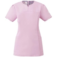 襟元デザインが顔周りをシャープにみせるレディススクラブ。