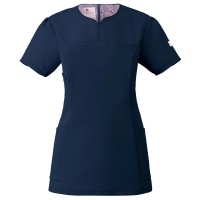 襟元デザインが顔周りをシャープにみせるレディススクラブ