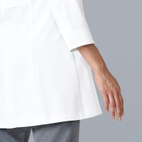 すっきりスマートなフォルムの診察衣はバックスタイルにもはっきり違いが出ます。ウエストベルトの位置を高くしたAラインで仕上げているので、よりスリムなイメージ。後ろ姿まで美しい印象に。
