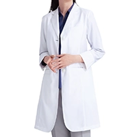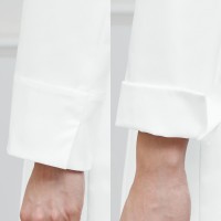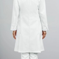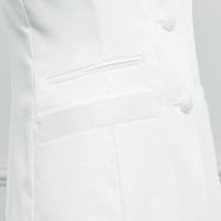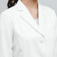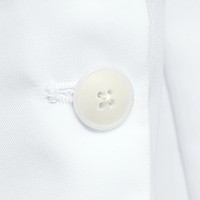 裏地、パイピングにもこだわりの白を使用。胸ポケットは適度な硬さのポケット縁でペンを差したり名札を付けても形が崩れません。両胸内側に内ポケット、両腰にタブレット端末も入る大型の方玉縁ポケット付き。