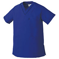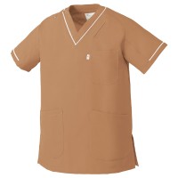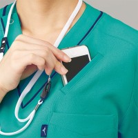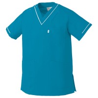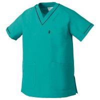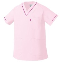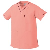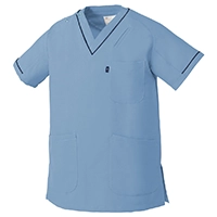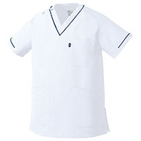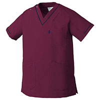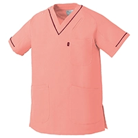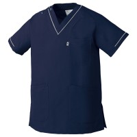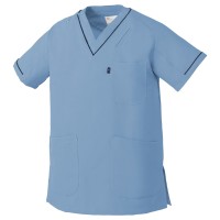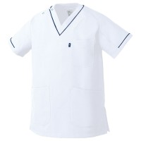 襟元と袖に配置されたパイピングがアクセント!スタイリッシュなスクラブ。