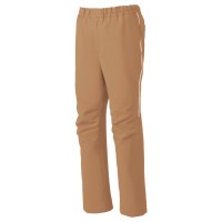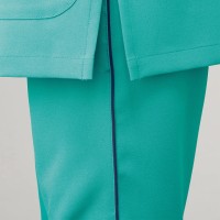 ストレッチ機能と膝のダーツでスムーズに動けるスクラブパンツ。脇のパイピングがアクセント。