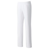 イージーケアで柔らかな手触り、透けにくく安心なホワイトカラーのイージーパンツ。