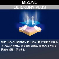 スポーツメーカーMIZUNOの技術「MIZUNO QUICKDRY PLUS」で、ストレスの原因となる汗のベタつきを軽減。一年を通してウェア内を快適な状態に保ちます。
