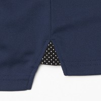 襟元~胸元のラインを生えさせるドット柄は両脇裾のガゼットにもポイントとして取り入れています。