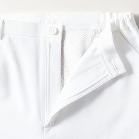 仕様:Dynamotion Fit/ホワイトの後ろのみショート丈メッシュ裏地付/ウエスト脇ゴム仕様/両脇ポケット/股下マチ付