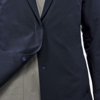 動きやすさはそのままにフィット感を持続。ポケットやボタンが表に出ない仕様で、スッキリとしたデザイン。