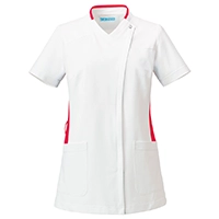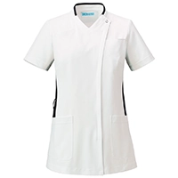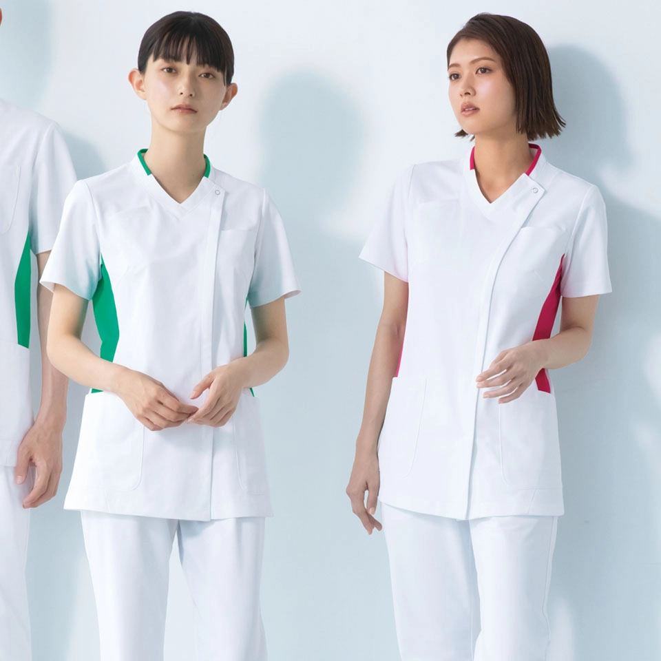 工業洗濯が可能で汚れがつきにくい生地を使用しているためお手入れも簡単。デザインと機能性を両立したレディススクラブ。