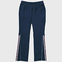 女性らしいすっきりシルエット。左前にアディダスのロゴ入りレディスパンツ。