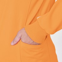 ポケットの出し入れ口を作業の妨げにならないサイドに設置し、 まえ身頃を使ってゆったりとした収納スペースを確保。
