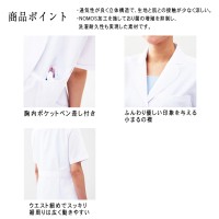 夏でも快適な軽量に優れた上質素材の半袖レディスドクターコート(シングル型)です。