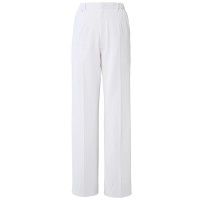 仕様:ウエスト脇ゴム、前後ダーツ、両脇ポケット、ベルト通し付き、裏付き(ホワイト・サックス)