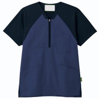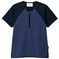 感染症対策に不可欠な熱湯や塩素剤による消毒・殺菌、さらには工業用洗濯でもほとんど色落ちしません。フロントのファスナーで着脱しやすく、袖と背面のニットで動きやすさも◎。