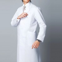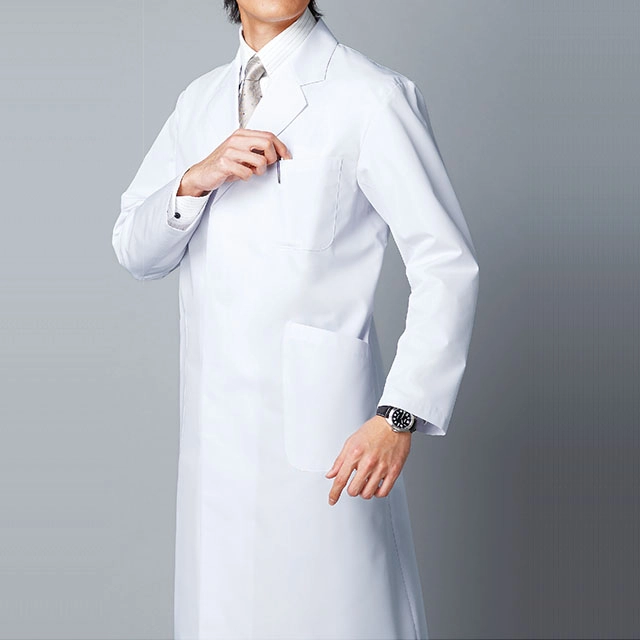 工業洗濯対応での丈夫でハリとコシのあるメンズシングルドクターコート。