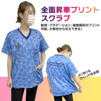 全面オリジナルプリントのスクラブ!カラーもデザインも自由自在です。5枚からご注文いただけます。