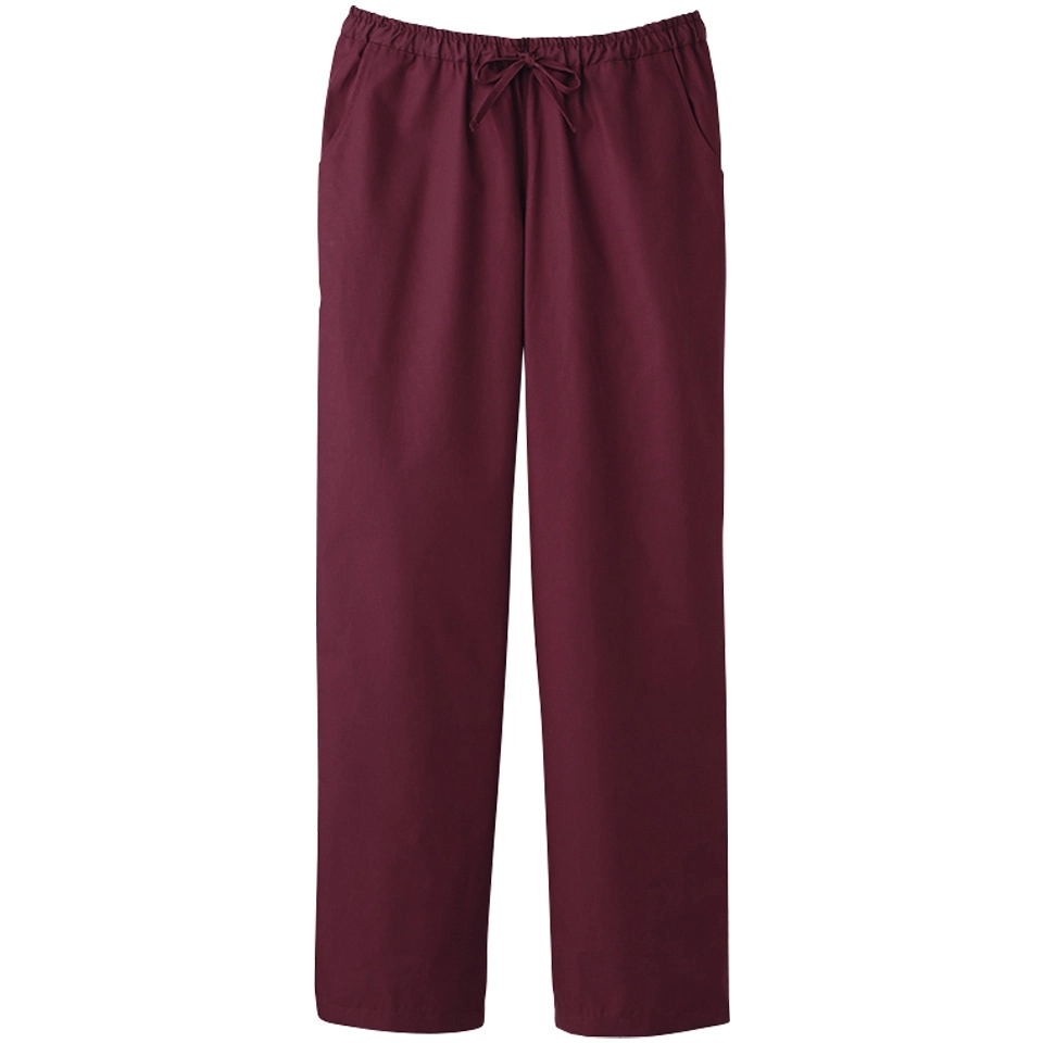 素材:スクラブポプリン ポリエステル65%綿35%仕様:総ゴム、両脇ポケット、後ろポケット付、ウエストひも入り