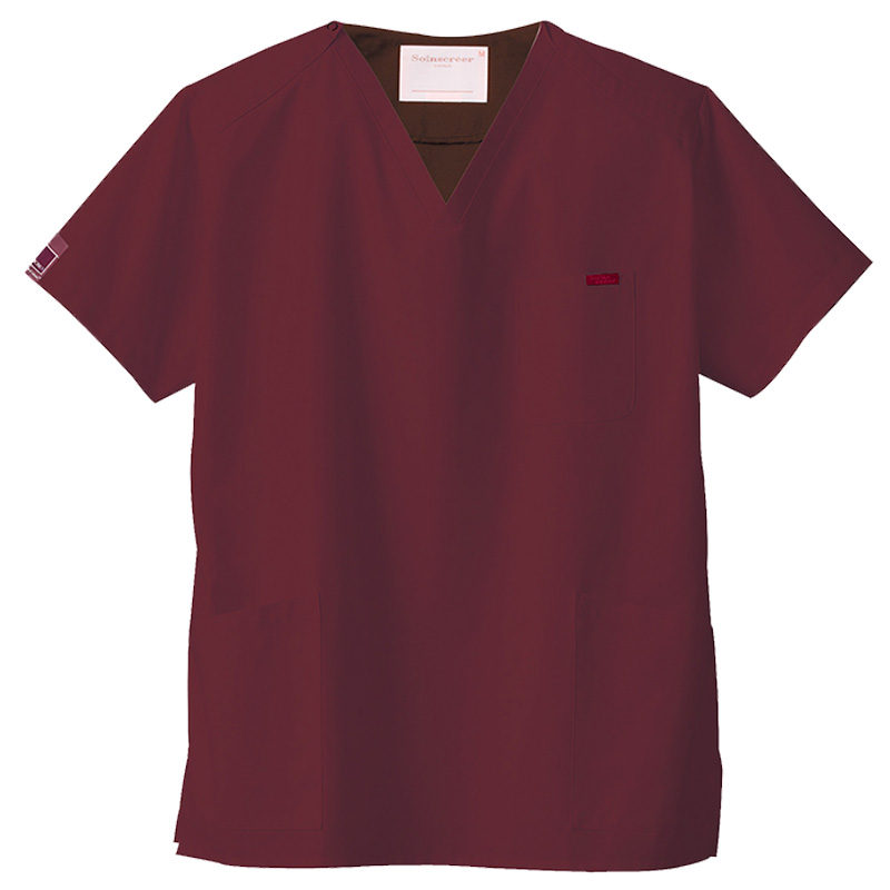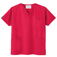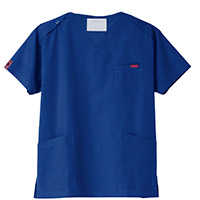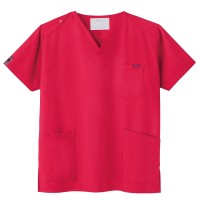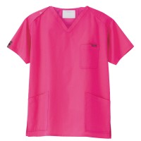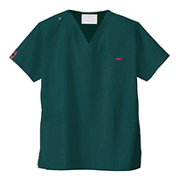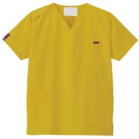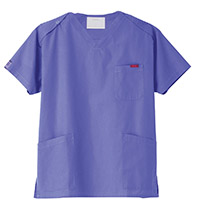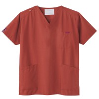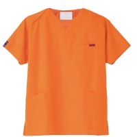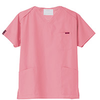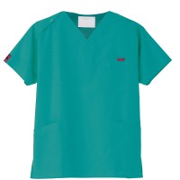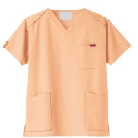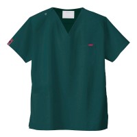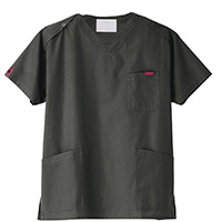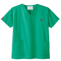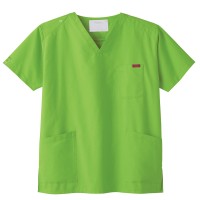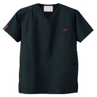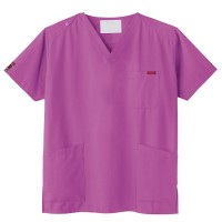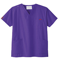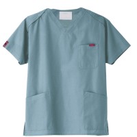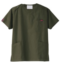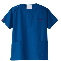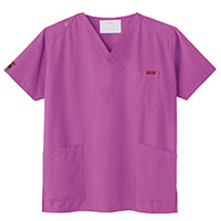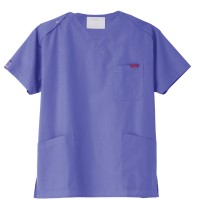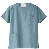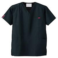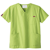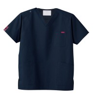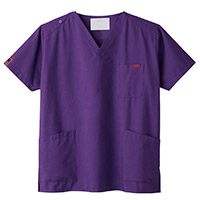 生地は、綿35%・ポリエステル65%の混紡素材。平織の定番を使用してストレッチ性はないものの、若干広めの身幅で着用時に動きやすいスクラブです。