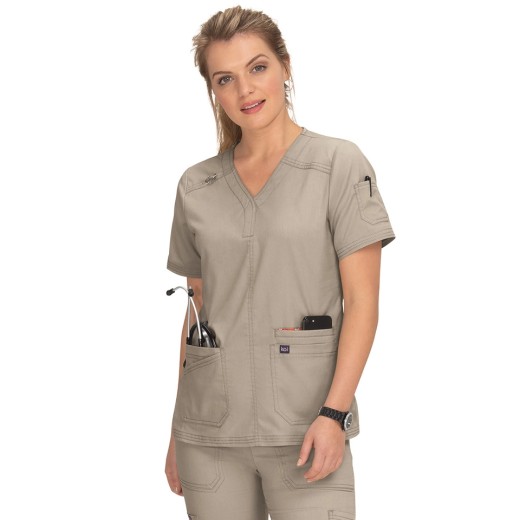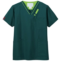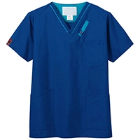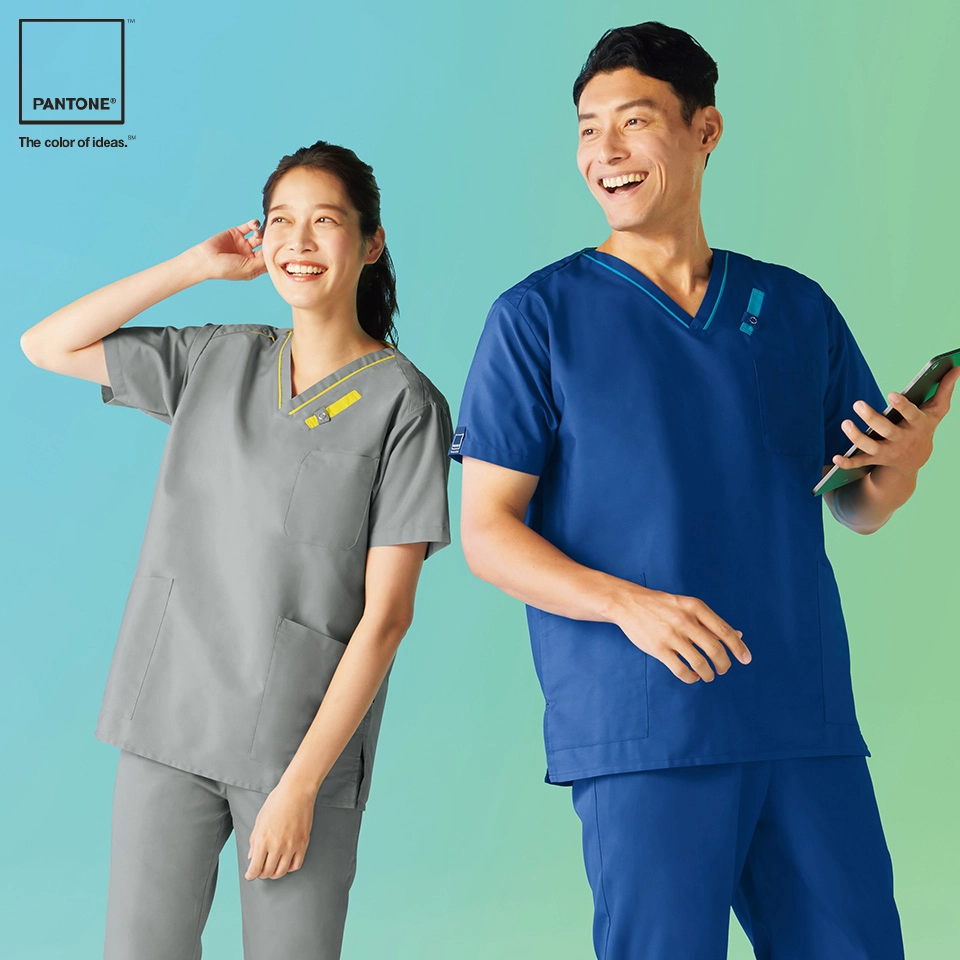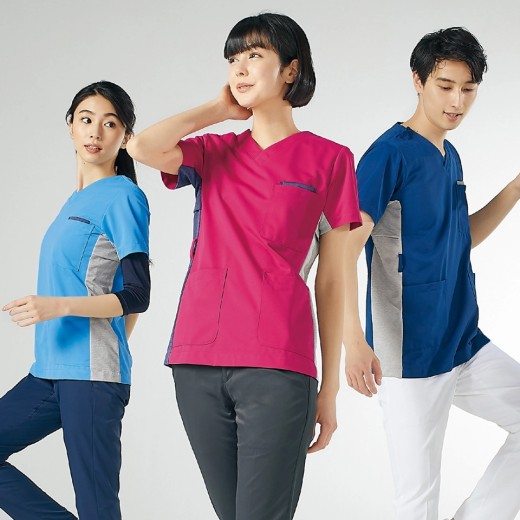 ラインとPHSポケット口の差し色が際立つおしゃれスクラブ
