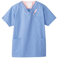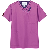 リラックス感のあるローズクォーツとセレニティは定番の人気です。ラインとPHSポケット口の差し色が際立つおしゃれスクラブ。