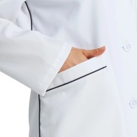 ネイビーのパイピングでシャープな印象をプラスし、さらに知的なデザインに