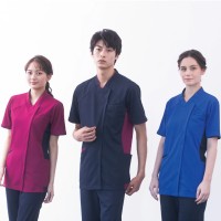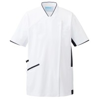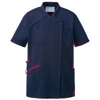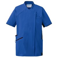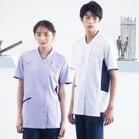 アシンメトリーな配色デザインがポイントの男女兼用スクラブジャケット
