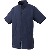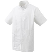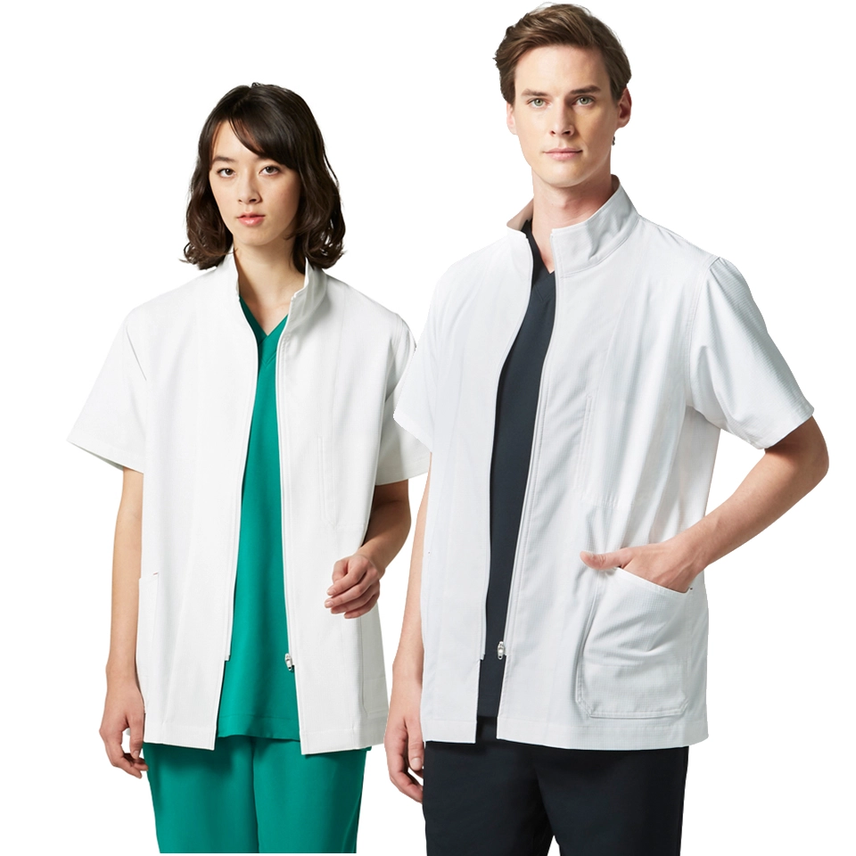 ショート丈・ジップアップ仕様の爽やかな半袖ドクターコート。