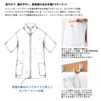 涼やかで、動きやすい。清潔感のある半袖ドクターコート(男女兼用)。