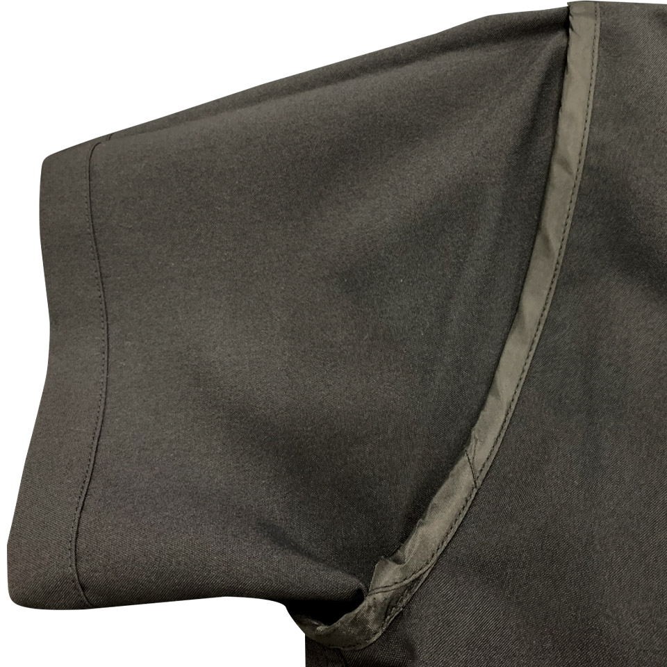 縫い合わせ部分からの血液等の侵入および糸くず等の異物混入防止を目的に2本針始末をし、袖の縫い合わせ部分は、縫い端を布で覆い隠すバイアステープ始末を採用し、血液等の侵入および糸くず等の異物混入を徹底的に防止します。