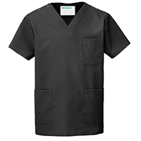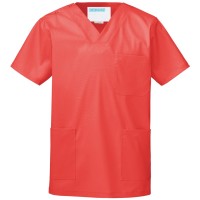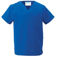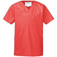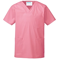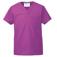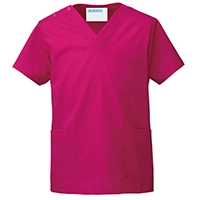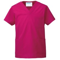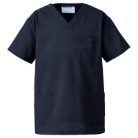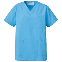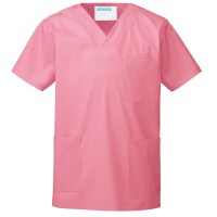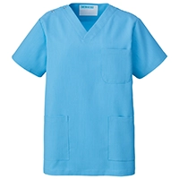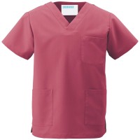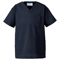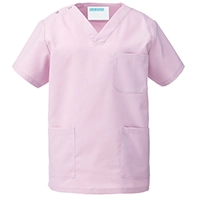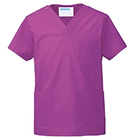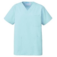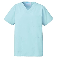 ポリエステル100%でありながら、綿タッチの肌触りと優れた吸汗・速乾性があり、下を向いても中が見えにくい開きの浅いV衿に、着脱が楽で脇が見えにくいセットインスリーブ。女性でも安心して着用できます。