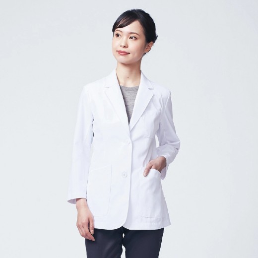 仕様:前ボタン/左胸ポケット/右腰ポケット内側ペン差し布付/両腰ポケット/袖口スリット入り