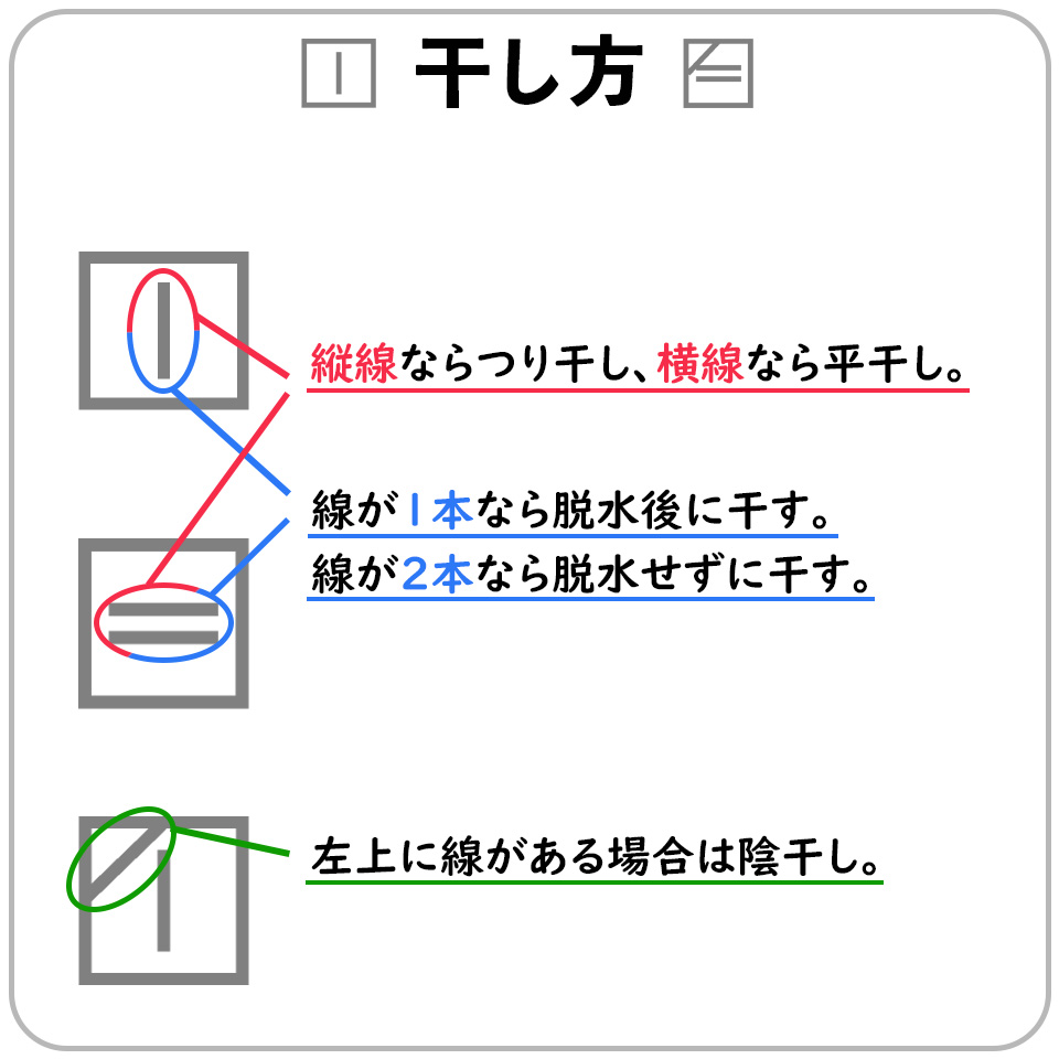 天日干しより乾くまでに時間はかかりますが、風通しの良い日陰に干すと生地が傷みにくく安心です。