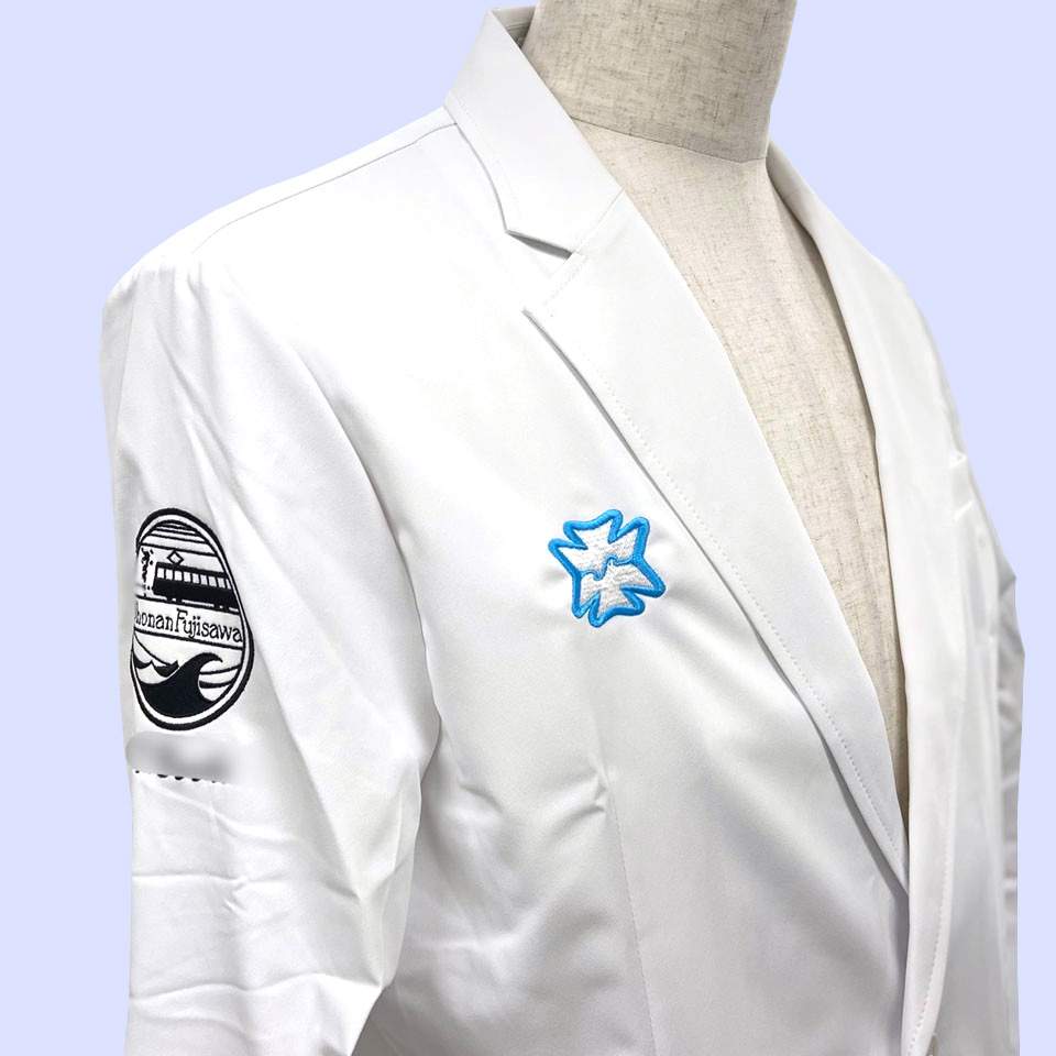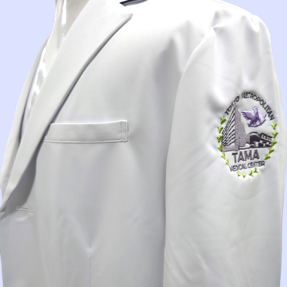 刺繍なら段差をまたいでの加工が可能!刺繍できる場所の自由度が高くなるので、よりこだわった白衣の製作ができます。