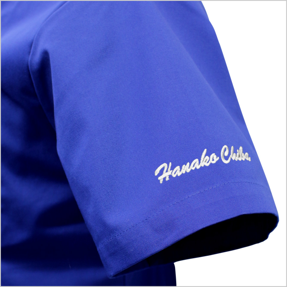 制菌・制電・速乾性に優れた「エコポプリン」生地採用。首元はスナップボタン仕様で着脱楽々!