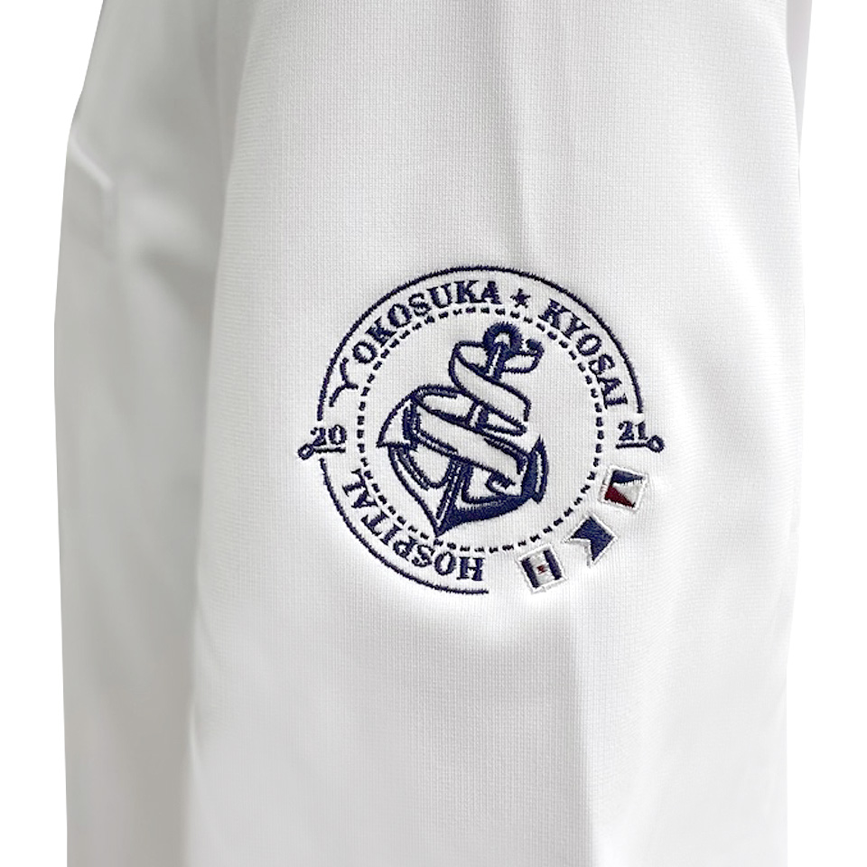 こだわりのドクターコートには、アルファユニのデザイン刺繍が映えます!