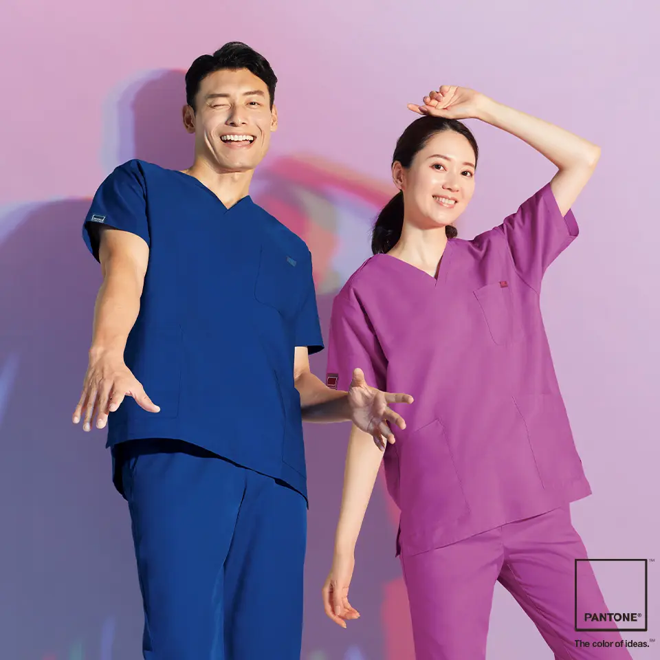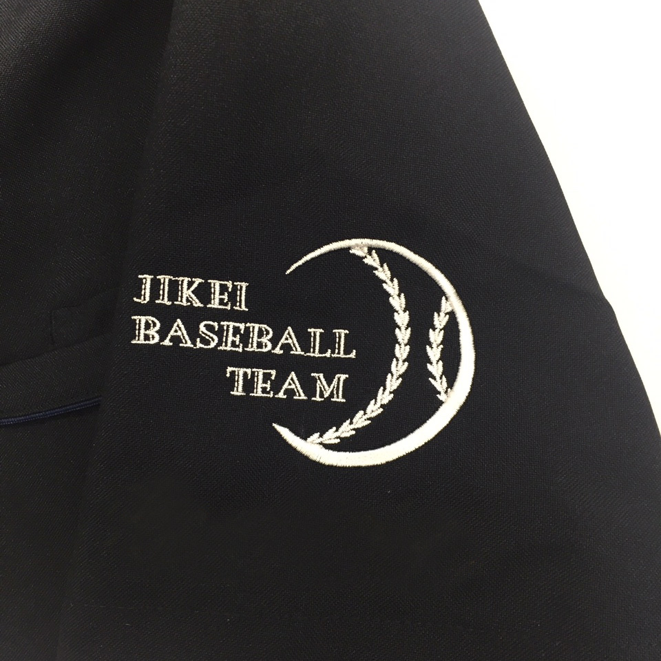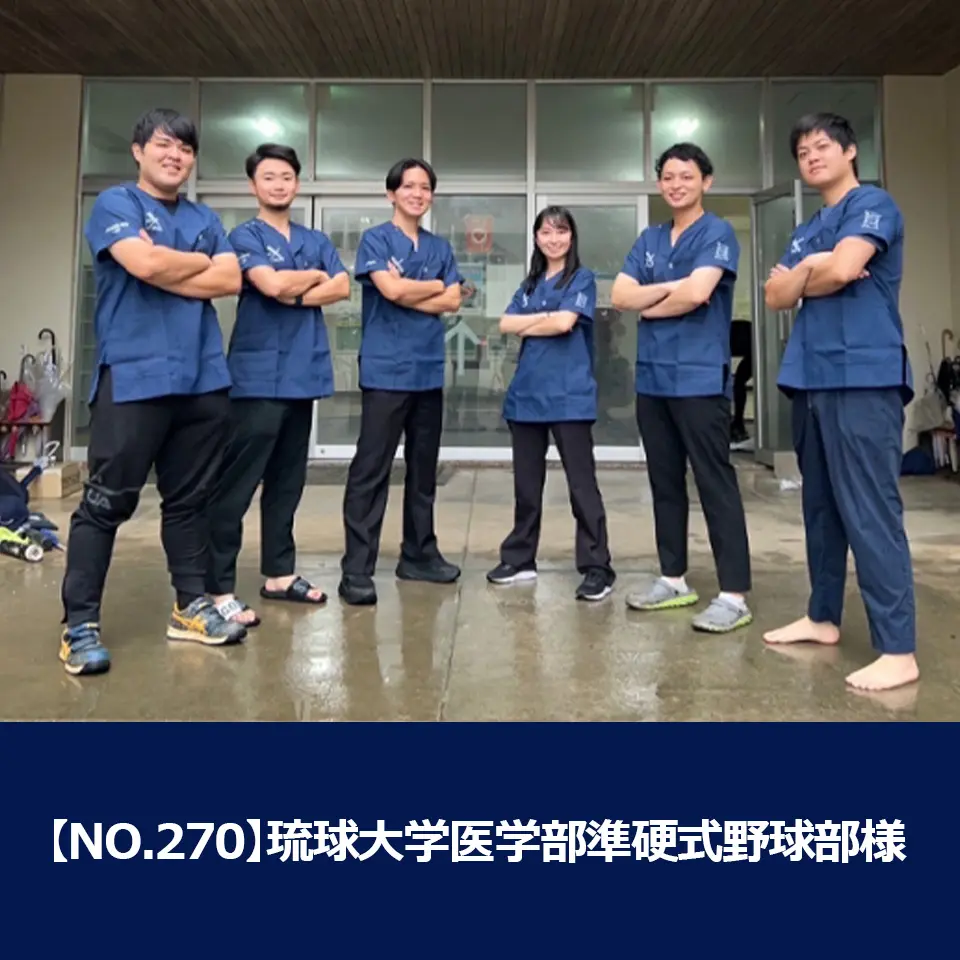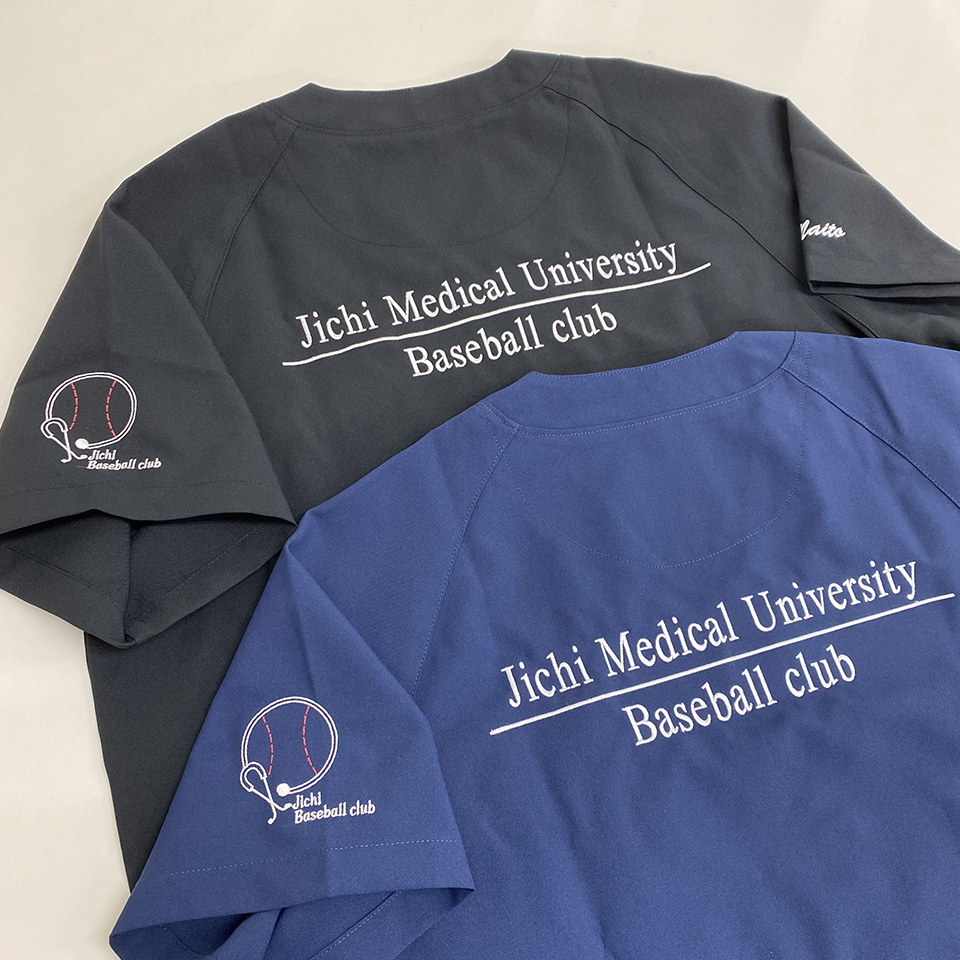 琉球大学医学部準硬式野球部様のスクラブ。バットがクロスしたデザイン刺繍が魅力的!