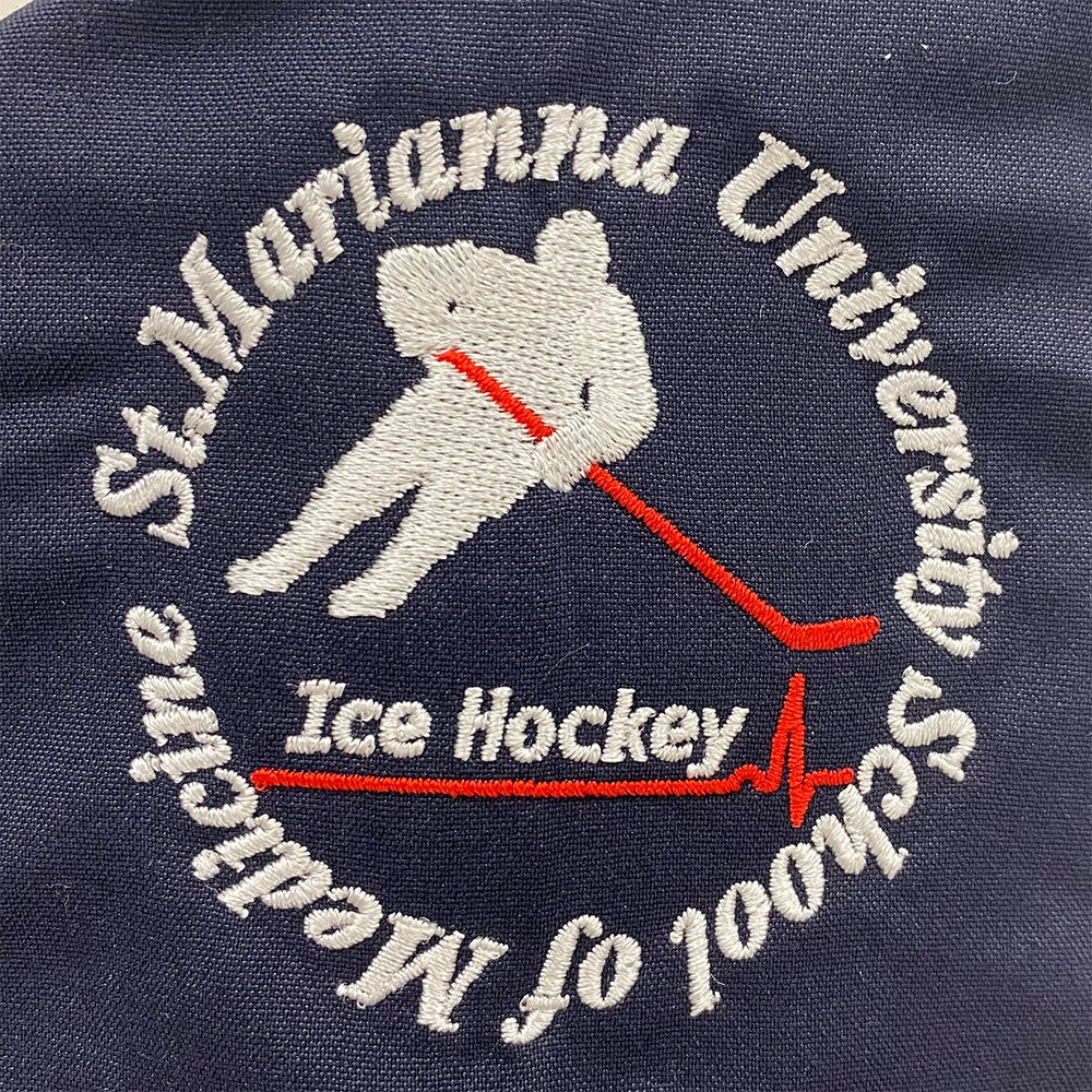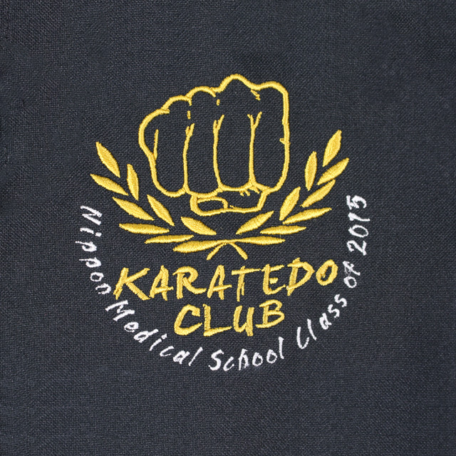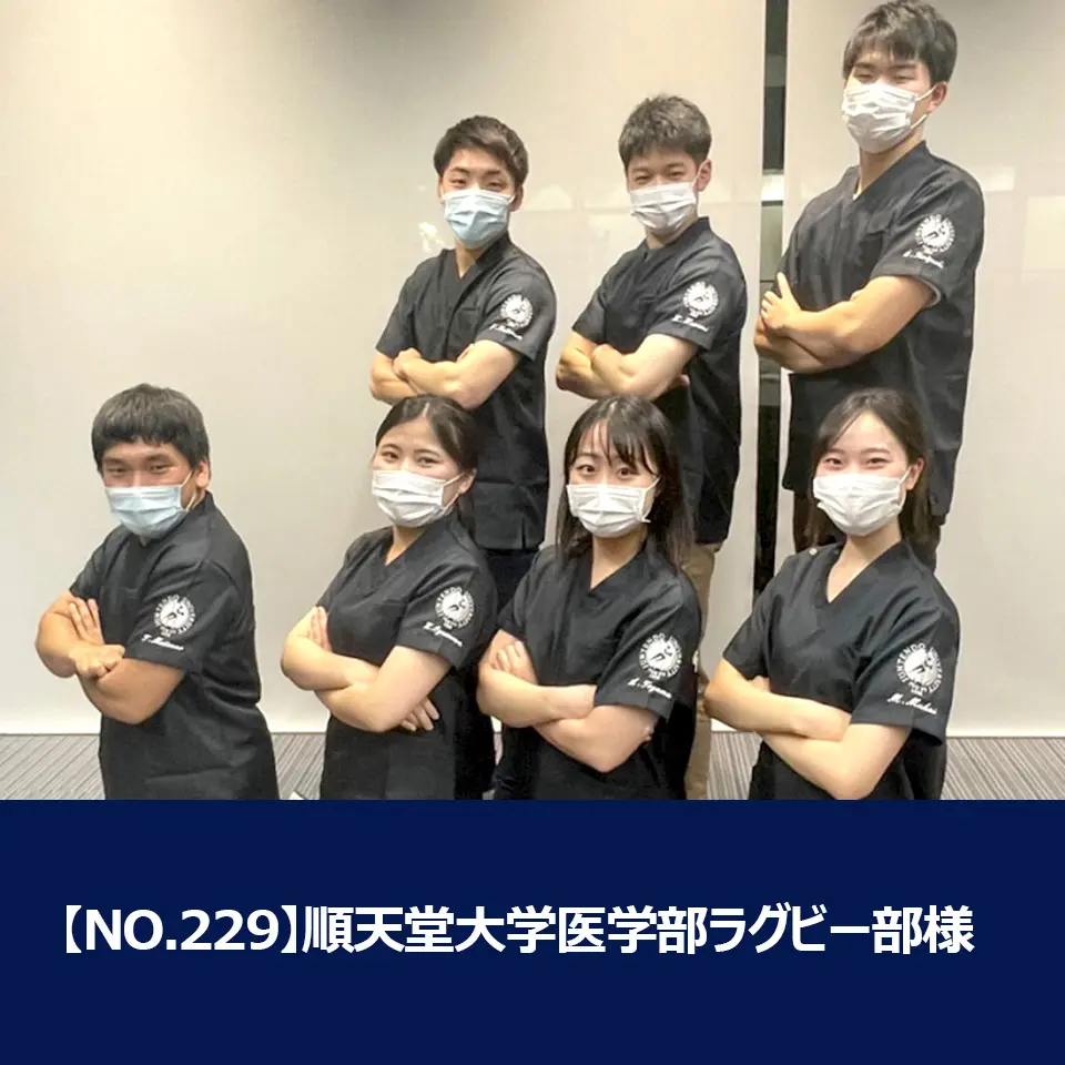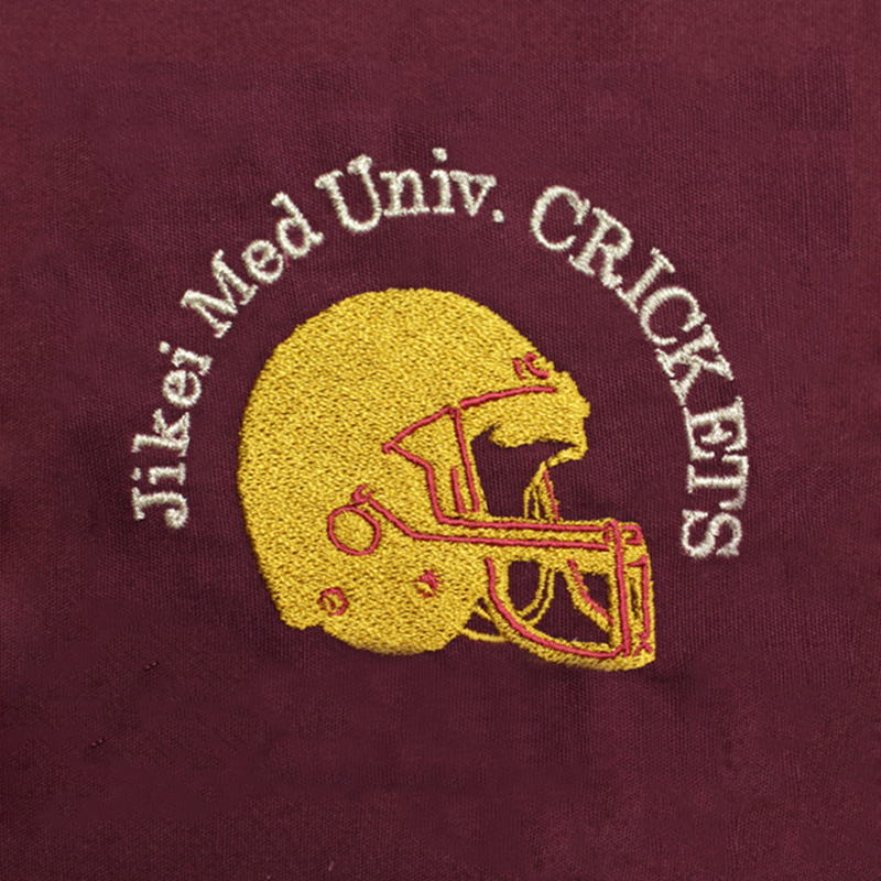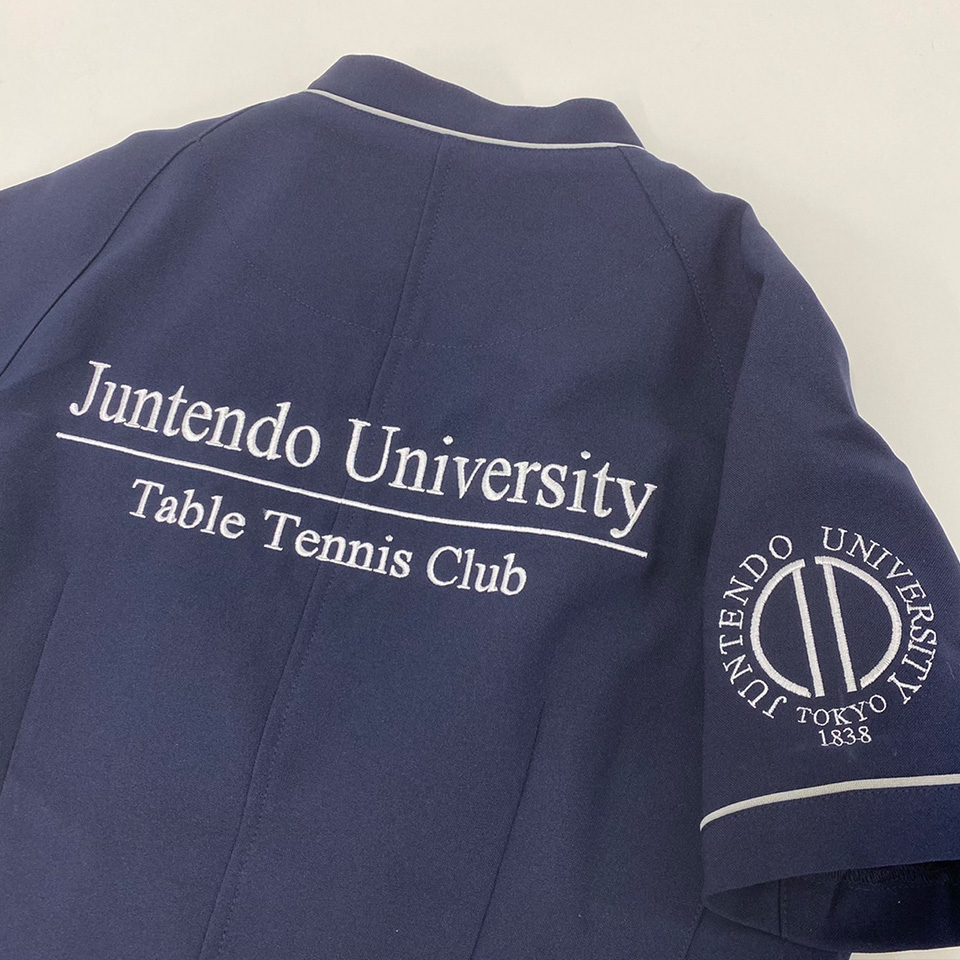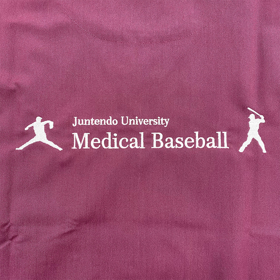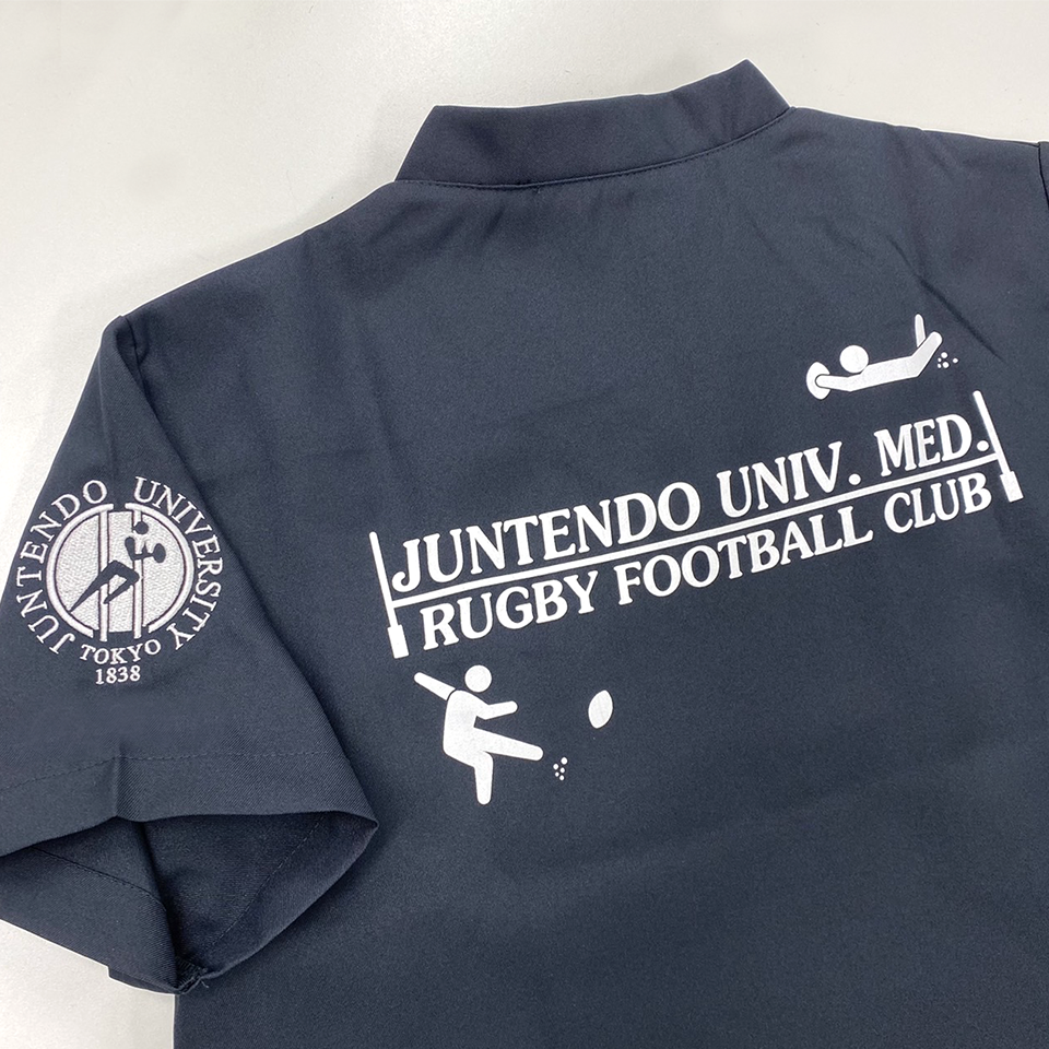 順天堂大学医学部ラグビー部様のスクラブ。校章とラグビー選手のシルエットがかっこいい!
