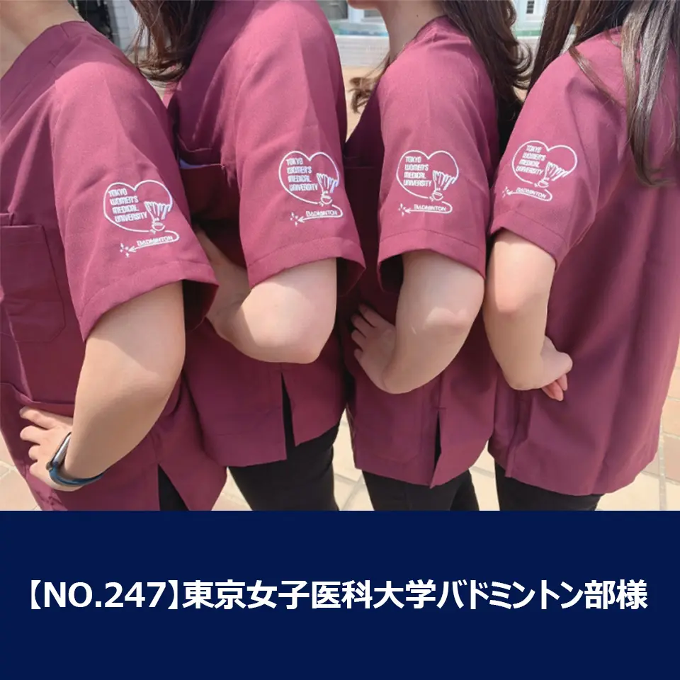 東京女子医科大学バドミントン部様の卒業記念スクラブ。シャトルとハートのデザインがとってもおしゃれ!