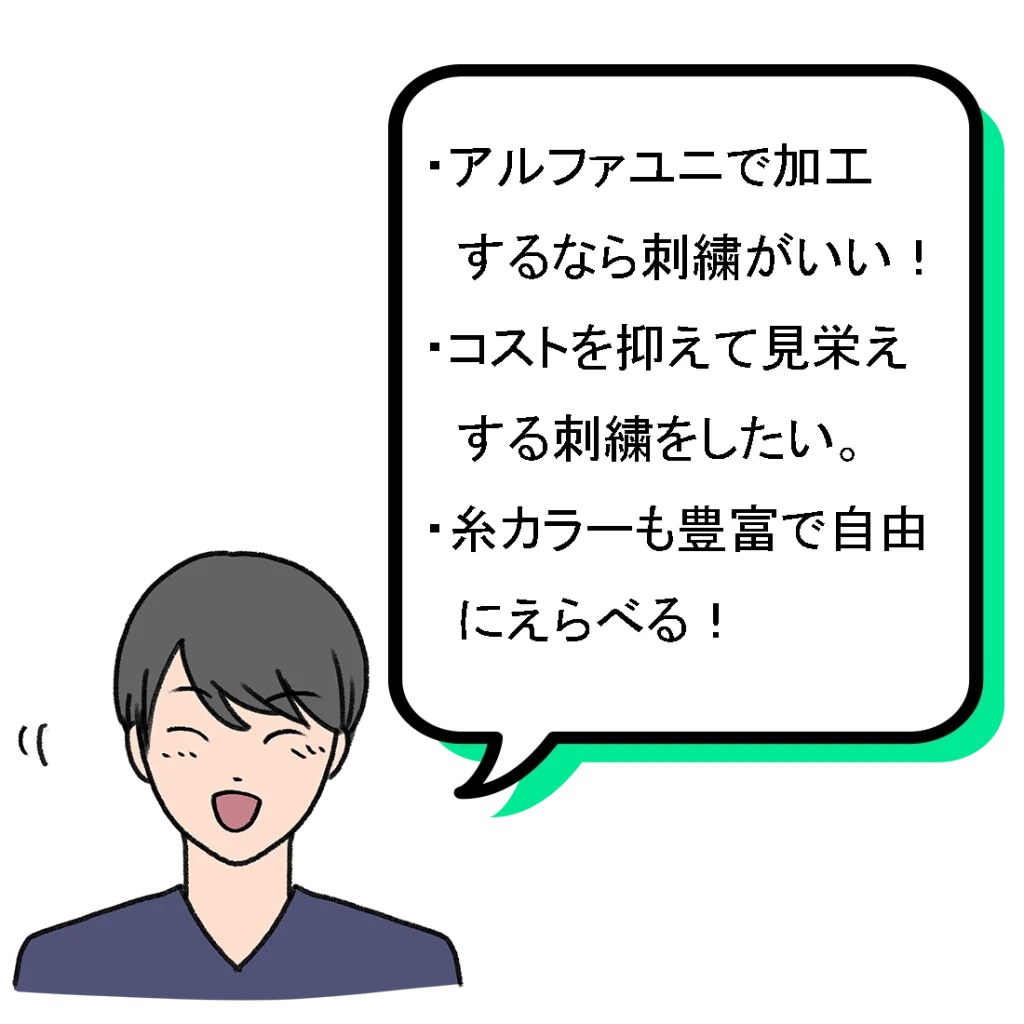刺繍の表現は色々!アルファユニの刺繍メニュー