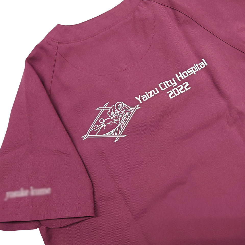 刺繍では難しい大きなデザインも表現できる人気の加工、シルクプリント!生地の表面にインクをのせるため刺繍特有のゴワつきもなく着心地を損なうこともありません。