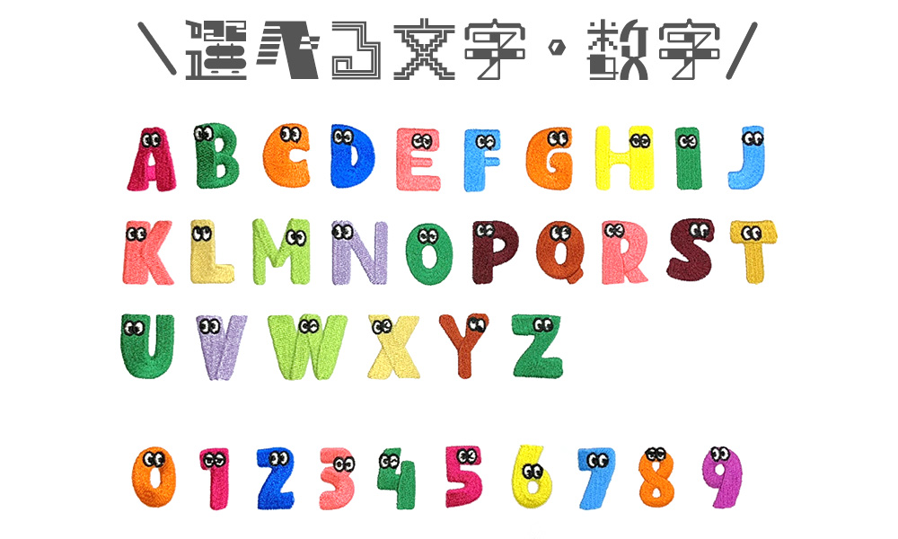 お好きな文字や数字をお選びください。どのアルファベット・数字も表情が豊かでかわいいので文字選びから楽しめます。