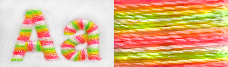 ※直刺繍のみ対応できます。ワッペン加工はできません。まるでぺろぺろキャンディのようなカラフルな糸色。ちょっとした文字刺繍に使ってもオリジナル感が出ておしゃれな刺繍ができます。