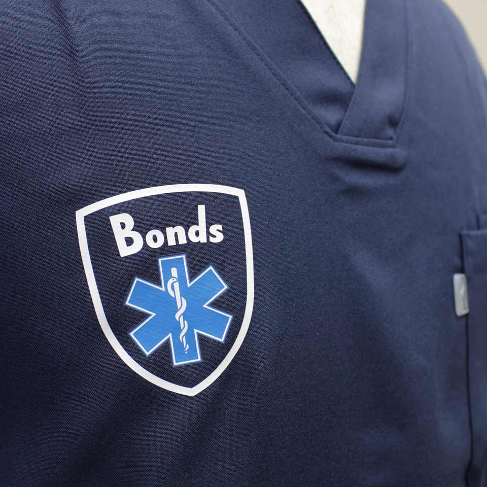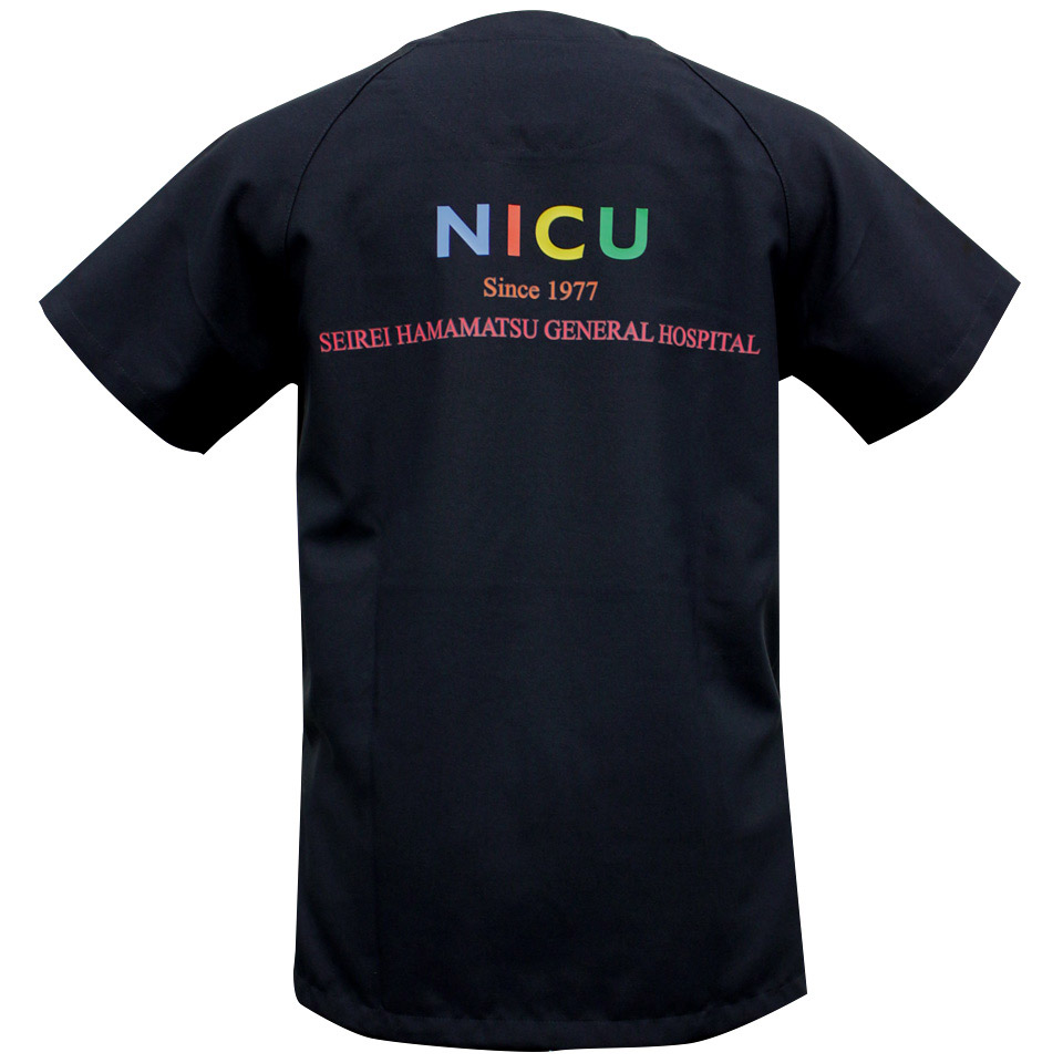人気No.1は胸or袖のカラープリント!胸や袖のワンポイントでも存在感のあるオリジナル・スクラブを安価で作成することができます。